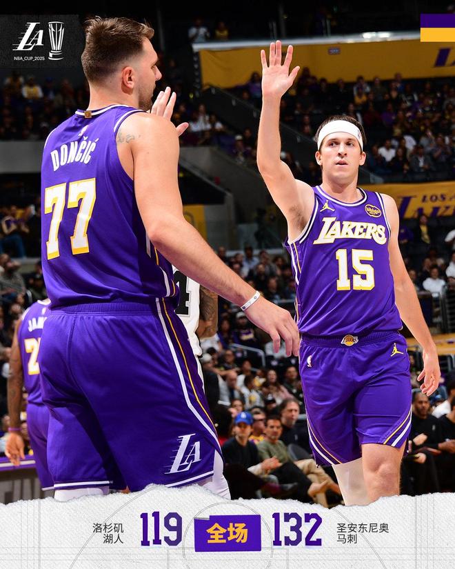 NBA杯湖人119-132马刺无缘半决赛,东契奇35+8,卡斯尔30+10+6